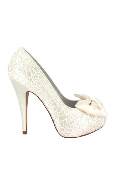 Lace Wedding Heels With Bow Ivory Coloured Bridal Shoes With Platform