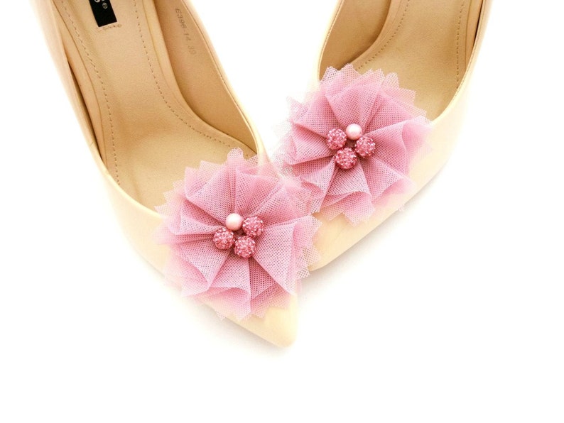 Dusty Pink Shoe Clips Wedding Shoes Clip Flower Tulle Shoe Etsy