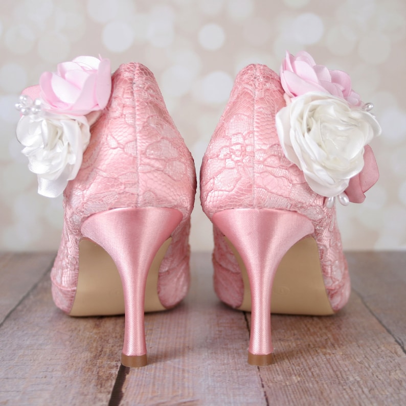 Wedding Shoes Pink Wedding Shoes Lace Wedding Bridal Heels Etsy