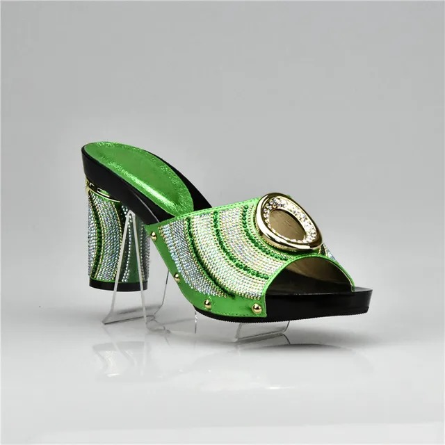 Us 26 61 22 Off New Green Color African Women Wedding Shoe Woman Open Toe Ladies Pumps Women Shoes Party Wedding Shoes Decorated With Rhinestone In