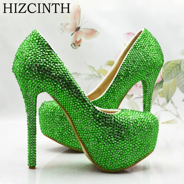 Us 78 0 Hizcinth Bride Wedding Shoes Green Diamond Crystal Pumps Rhinestone High Heels Platform Marry Party Shoes Woman Zapatos Mujer In Women S
