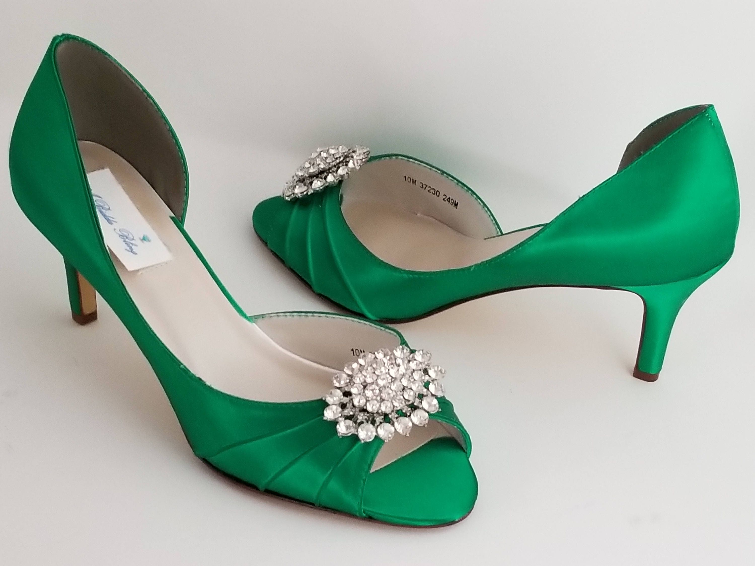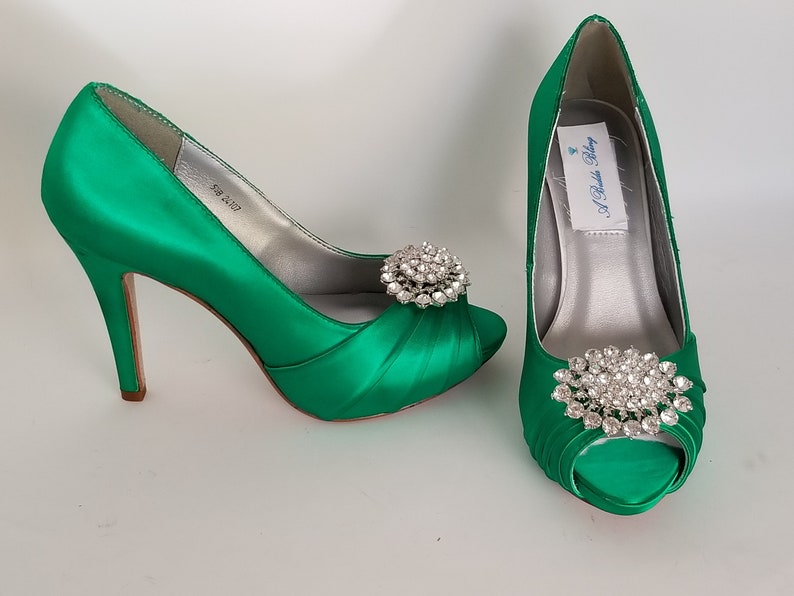 Emerald Green Bridal Shoes Emerald Green Wedding Shoes With Crystal Oval Brooch Or Pick From 100 Colors Bridesmaid Shoes