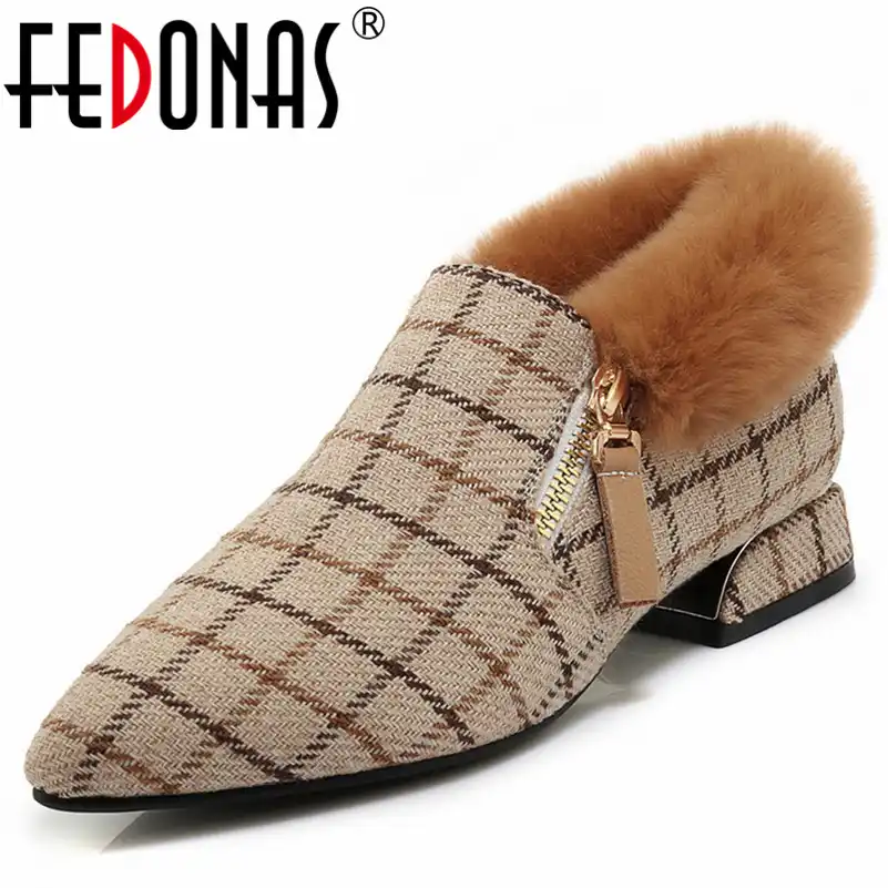 2018 Pointed Toe Wedding Shoes Bride Faux Fur Warm Shoe Casual Wear