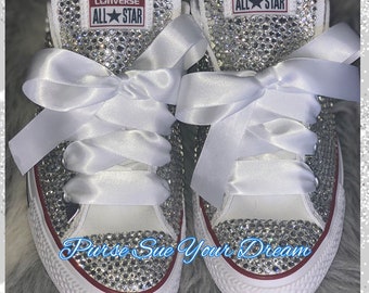 Bling White Converse Sneakers Crystal Converse Shoes Wedding