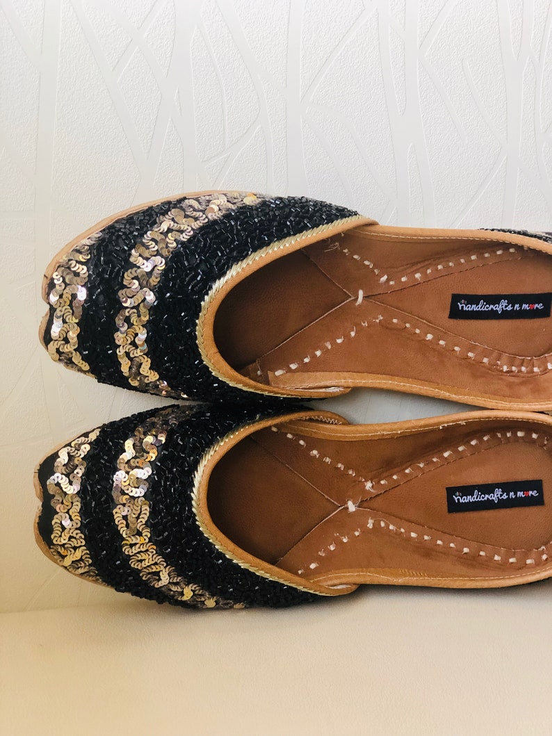 Black Gold Embellished Sequinned Wedding Shoes Beaded Bridal Etsy