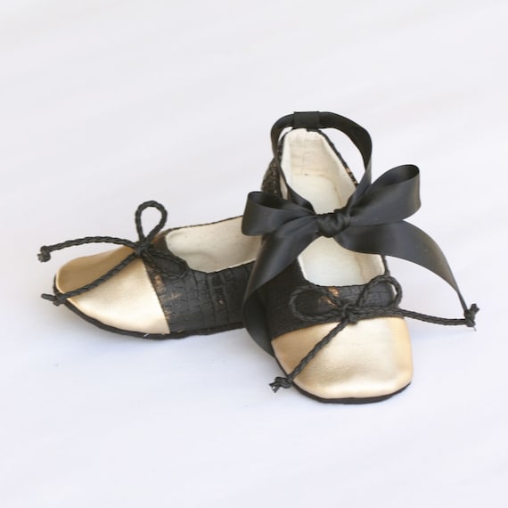 Baby Ballet Slipper Black Snakeskin Gold Shoes Toddler Etsy