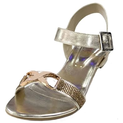 Aarz Women Ladies Evening Court Diamante Low Heel Sandal Prom Party