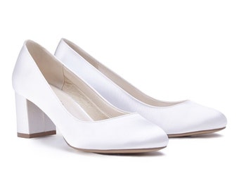 Rainbow Club Wedding Shoes Grace Block White Satin Wedding Shoes