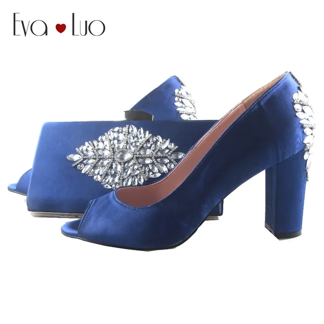 Us 169 0 Bs879 Custom Made Royal Blue Crystal African Shoes With Matching Bag Set Block Heel Women Pumps Shoes Bridal Wedding Shoes In Women S Pumps