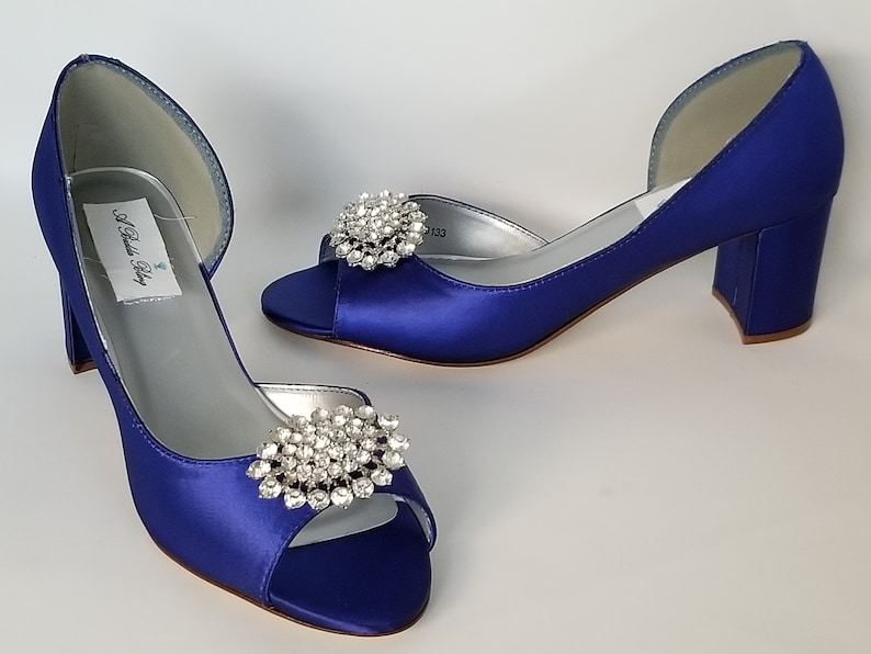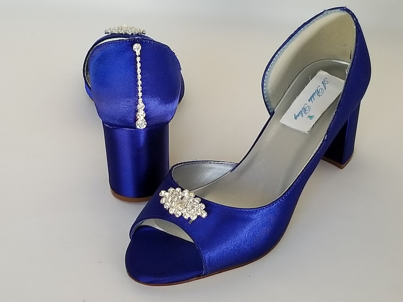Royal Blue Wedding Shoes Block Heel Crystal Design And Teardrop Back Cobalt Blue Bridal Shoes Chunky Heel Blue Bridesmaid Shoes 100 Colors