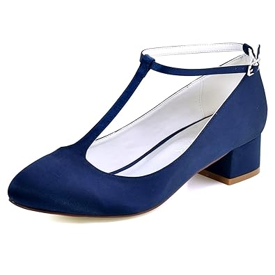 Ankle Straps Satin Navy Blue Low Heel Bridesmaid Wedding Bridal