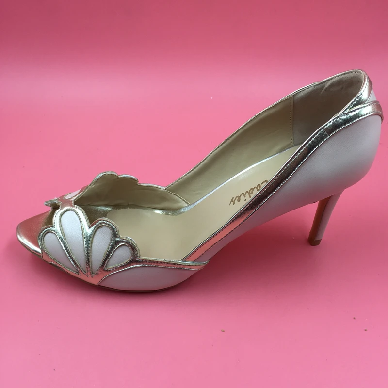 Open Toe Champagne Wedding Shoes With Zipper Back