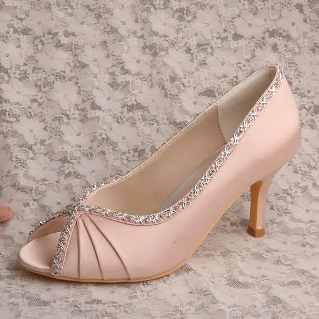Fashion Blush Wedding Shoes 3 5 Satin Wrapped Heel Crystals Details