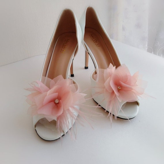 Blush Pink Wedding Shoe Clips With Feathers Bridal Shoe Clips Etsy