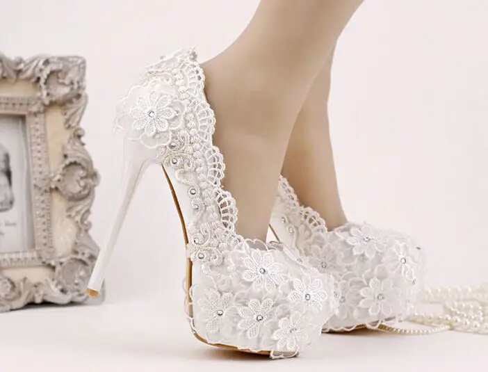 2016 White Bud Silk Chiffon Bride Shoes High Heels Dress Shoes
