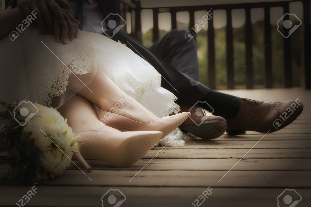 Feet Of Bride And Groom Wedding Shoes Soft Focus Stock Photo