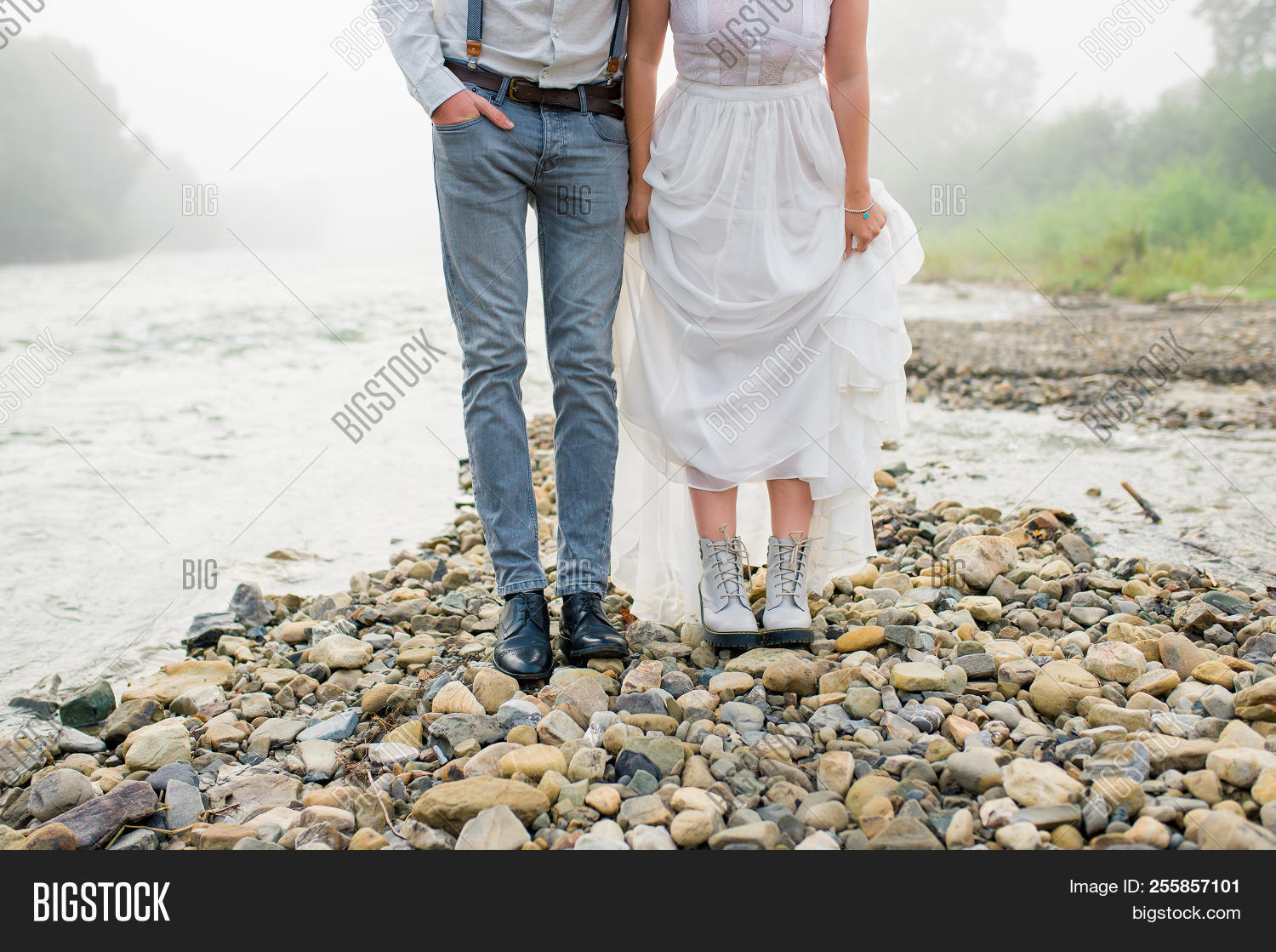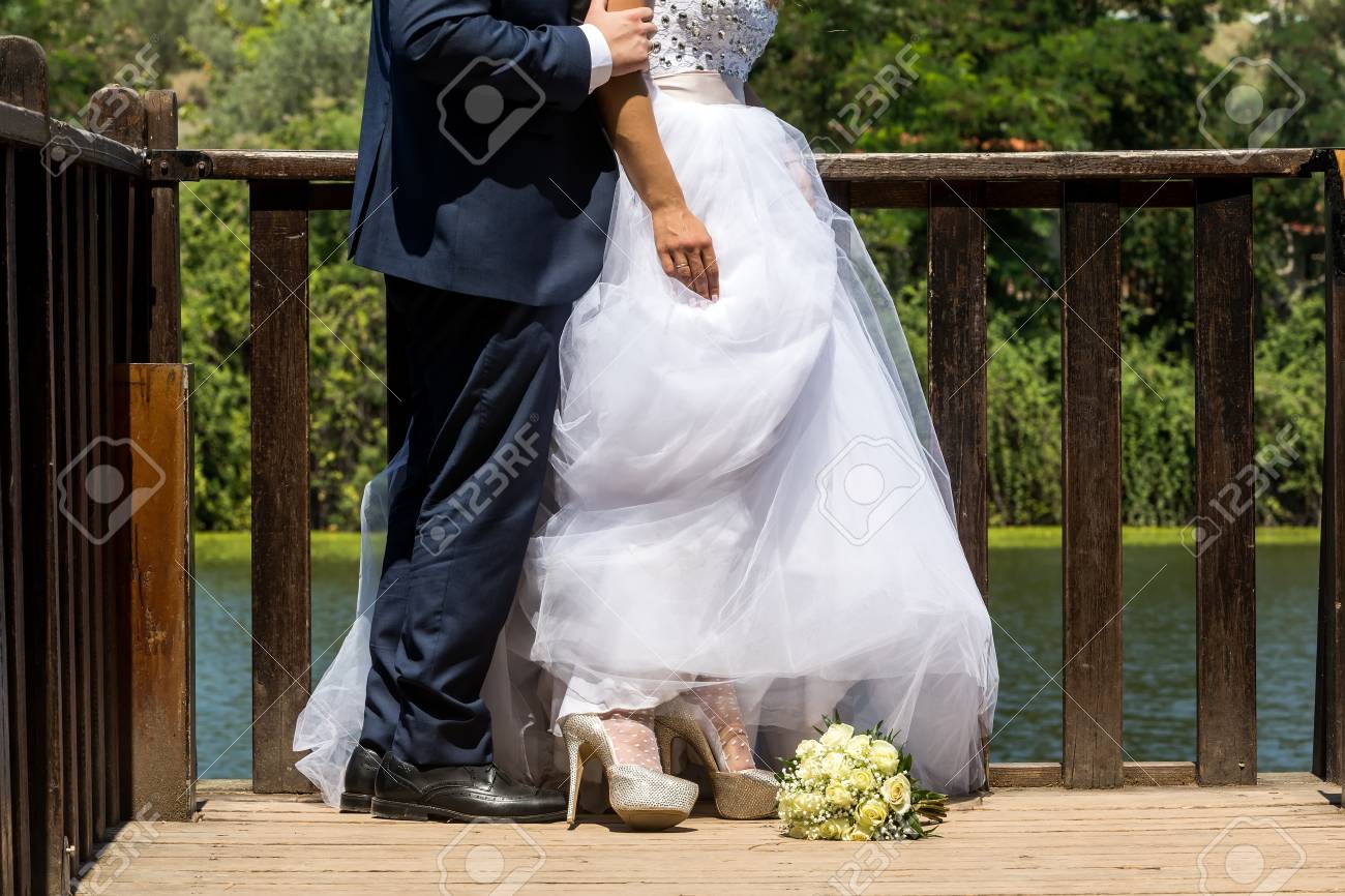 Wedding Shoes In A Standing Bride And Groom Stock Photo Picture And