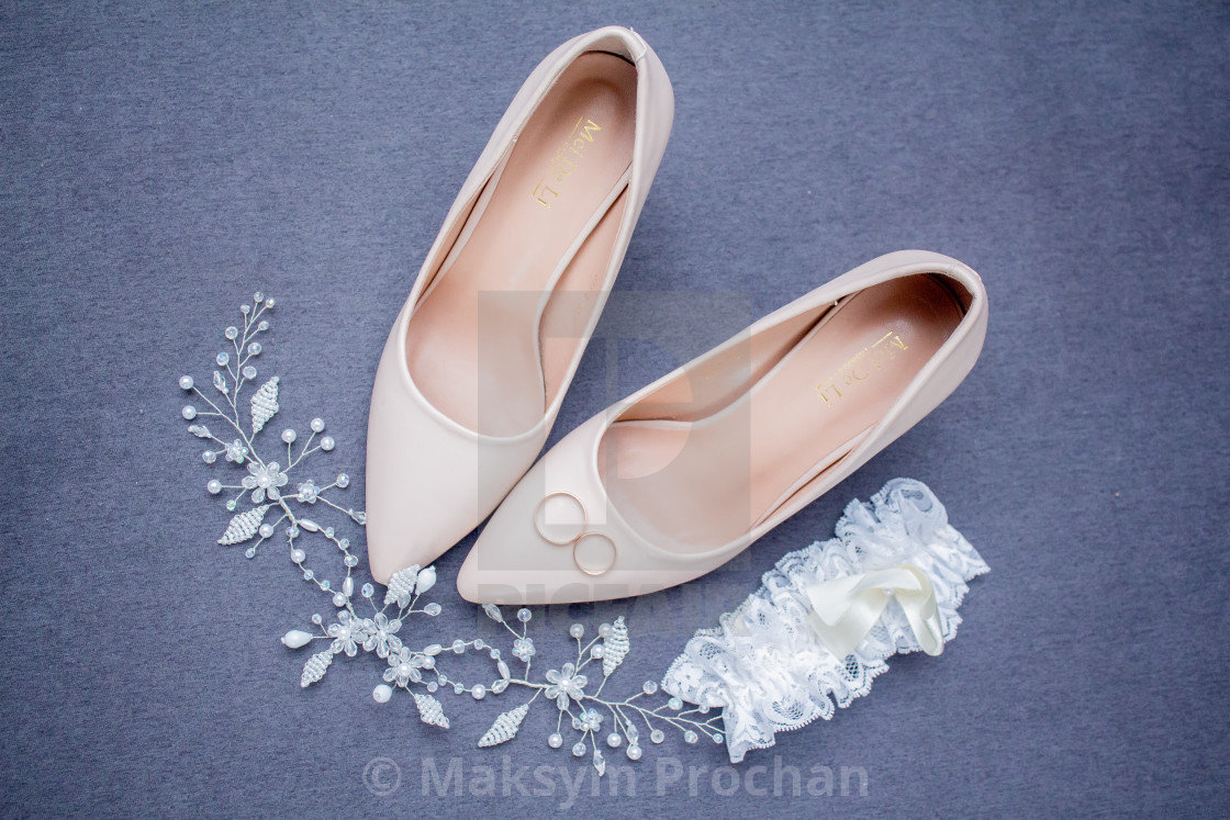 Wedding Shoes For Bride Near One Engagement Ring And Two Wedding