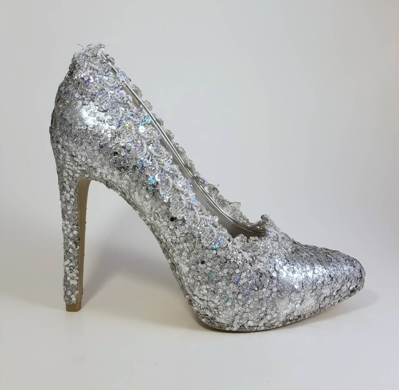 Clear Wedding Shoes Cinderella Bridal Silver Lace Customised