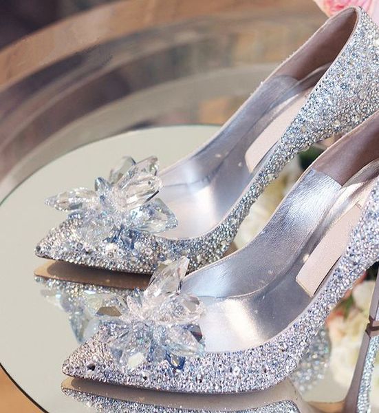 2015 New Cinderella Glass Slipper Shoes Diamond Point Single Shoes