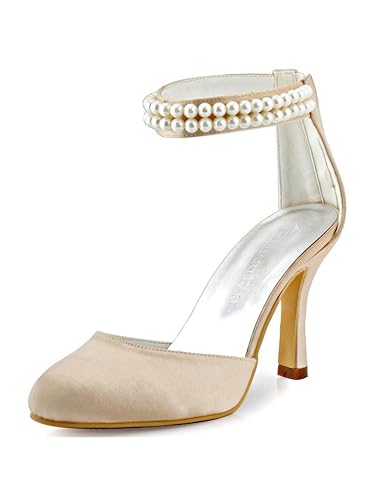 Women S Satin Stiletto Heel Closed Toe Platform Champagne Wedding