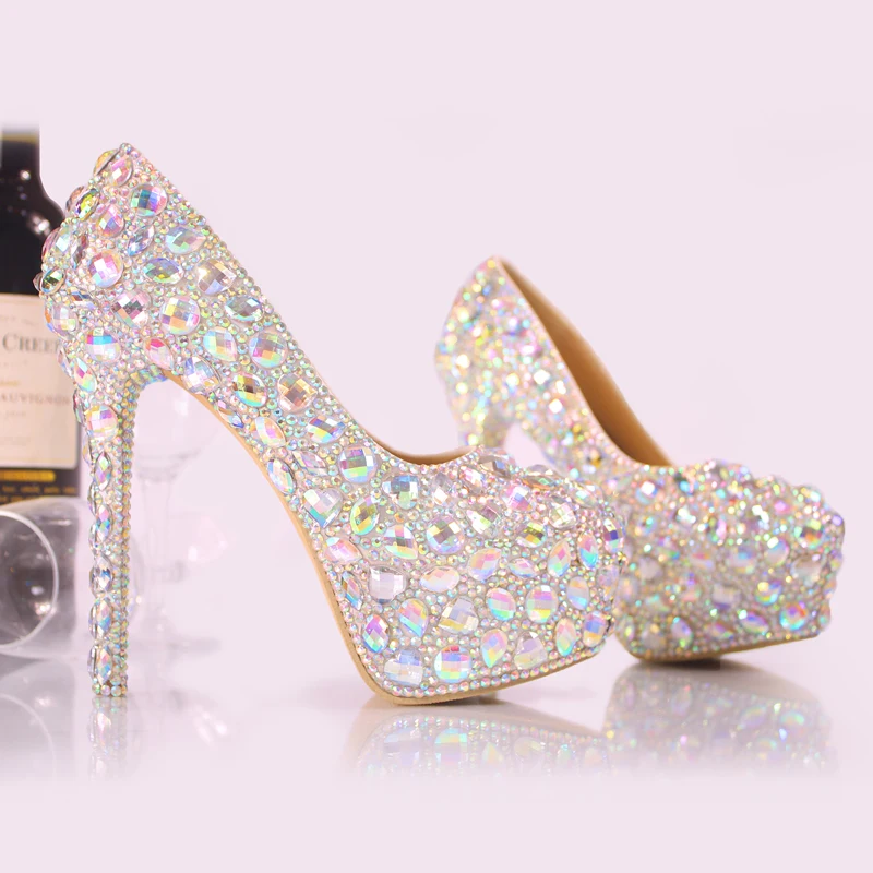 Us 70 99 29 Off 2018 Silver Ab Crystal Diamond Exquisite Wedding Shoes Sparkling Rhinestone Bridal Shoes Evening Prom Party Women Pumps Size 11 In
