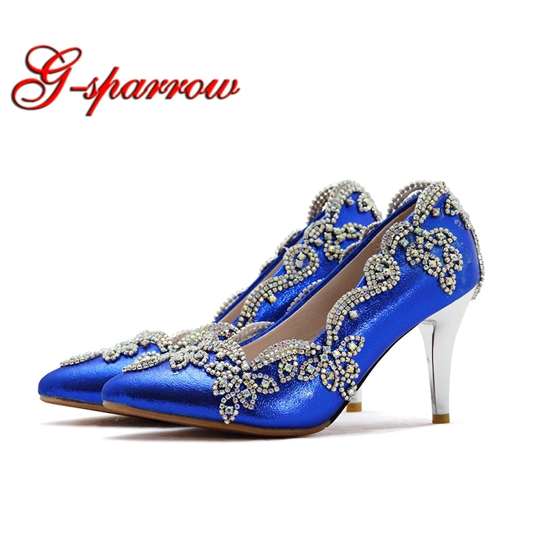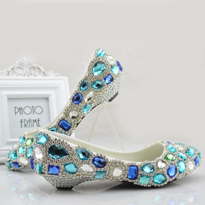 Blue Rhinestones Wedding Shoes For Bride Bridal Pumps 2 5cm 6cm Low