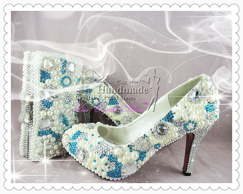 Comfortable Bridal Shoes New Handmade Crystal Shoes Sky Blue Wedding