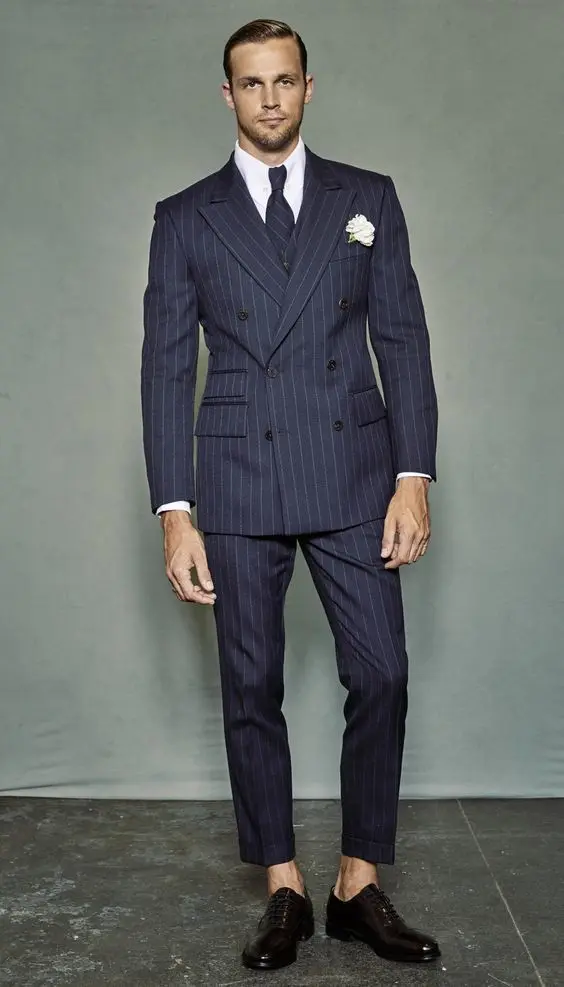 Buy Navy Blue Wedding Mens Suit Double Breasted And Get Free