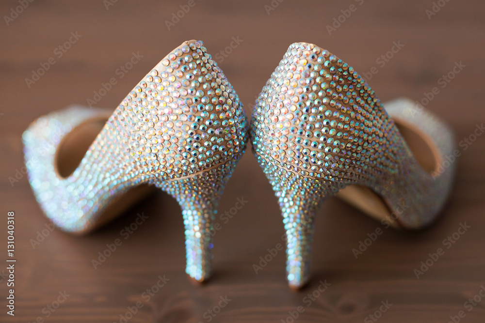 Photo Art Print Elegant Wedding Shoes With Colored Rhinestones