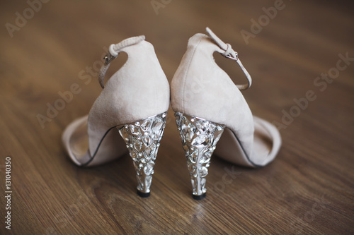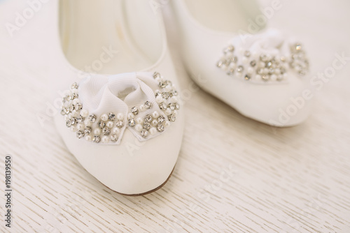 Elegant Women S Wedding Shoes With Rhinestones On A Light Background
