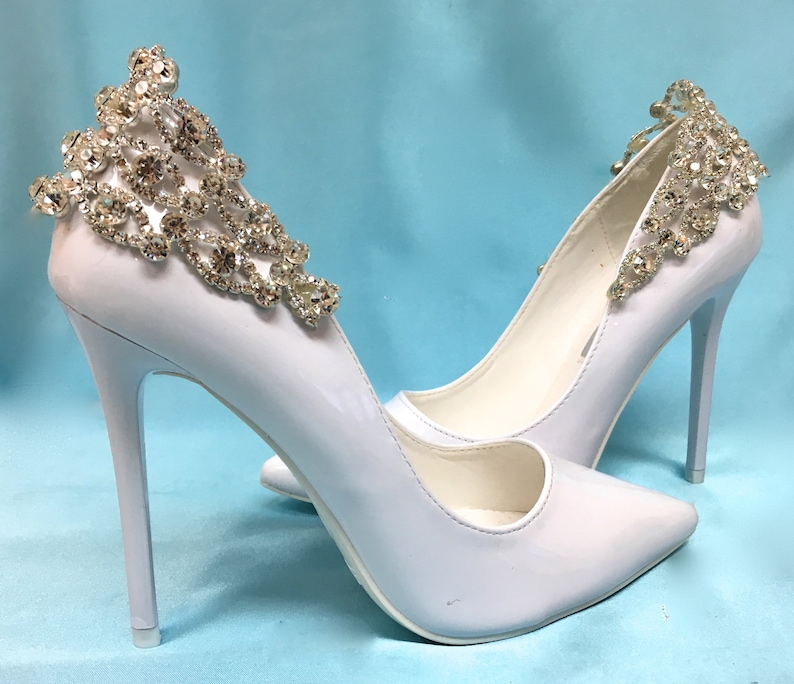 Picture Of Elegant White Wedding Shoes With Rhinestones Are A Fresh