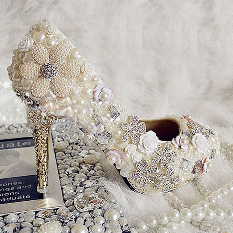 Elegant Wedding Shoes Rhinestone Imitation Pearl Bridal Shoes 10cm
