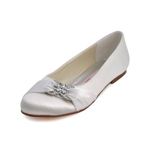 Elegantpark Ep2006 Satin Round Toe Rhinestones Flat Women Wedding