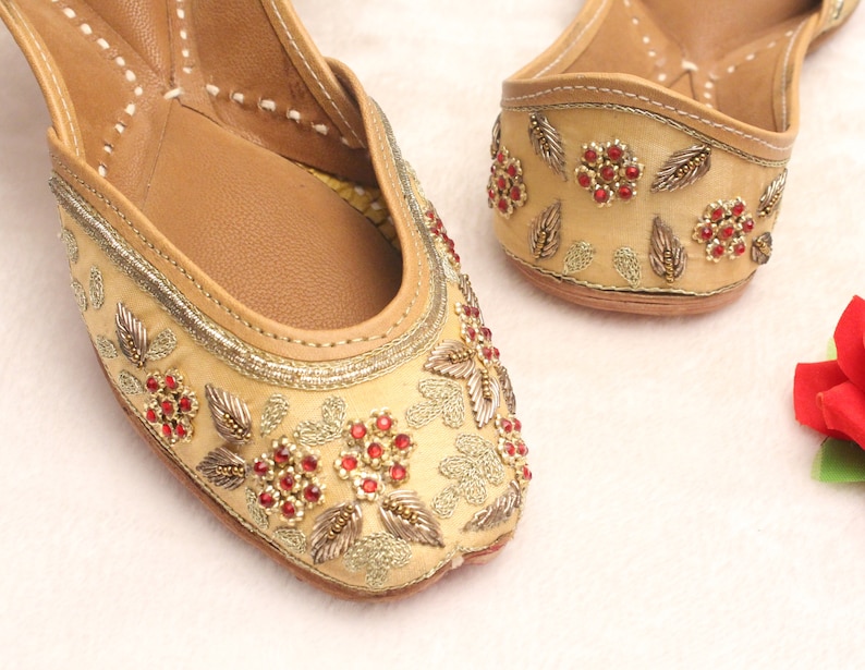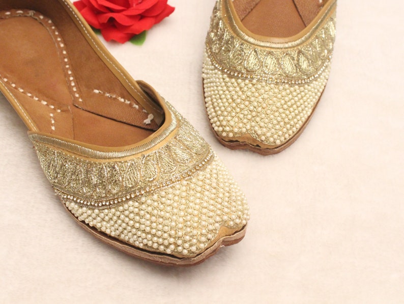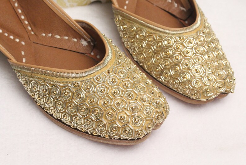 Indian Bridal Wedding Shoes Women Lehnga Gold Jutti Shoes Gold Wedding Flats Gold Ballet Flats Jasmine Khussa Punjabi Shoes Us Size 4 5 7 5