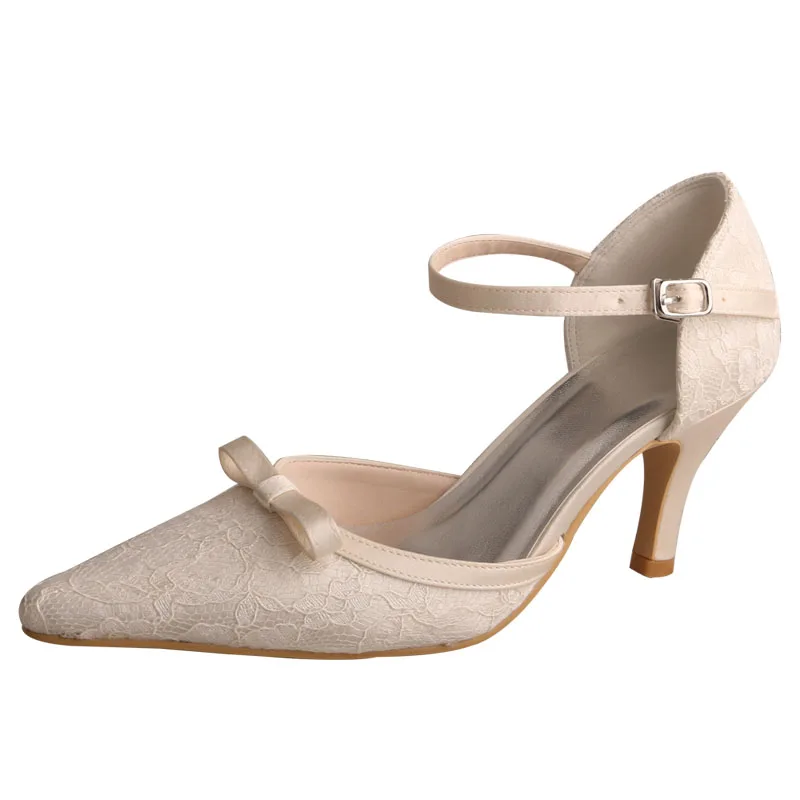 Ladies Fancy Evening Wedding Shoes Pointed Toe Ivory Lace Bride