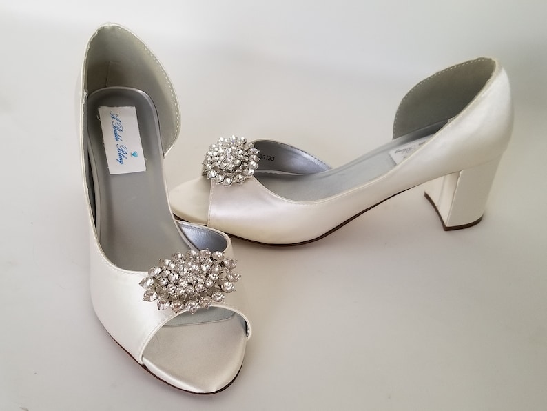 Ivory Wedding Shoes Block Heel Sparkling Crystal Oval Design Etsy