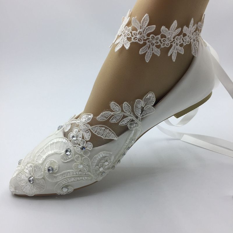 Handmade Women Wedding Shoes Ivory Ribbon Bride Wedding Dresses Han