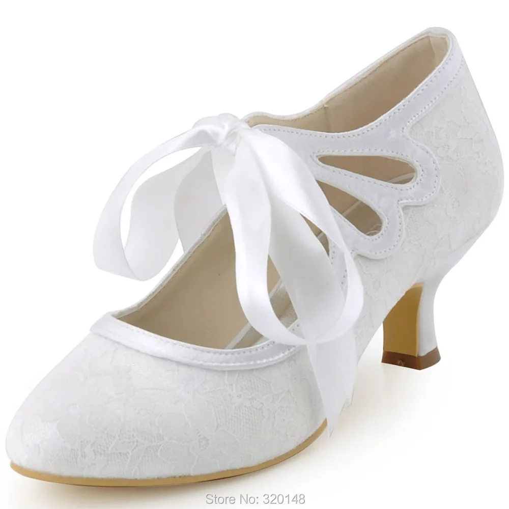Ivory Lace Satin Bridal Wedding Shoes Low Mid Kitten Heel Court Pump