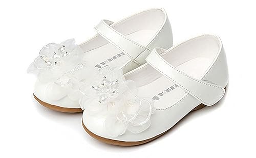 Pettigirl Kids White Girls Shoes With Bow Microfiber Leather Baby Pu