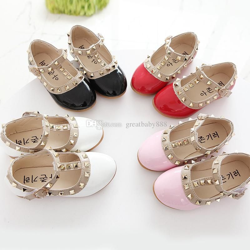 Fashion Children Pu Leather Shoes Girls Princess Wedding Rivet Shoes