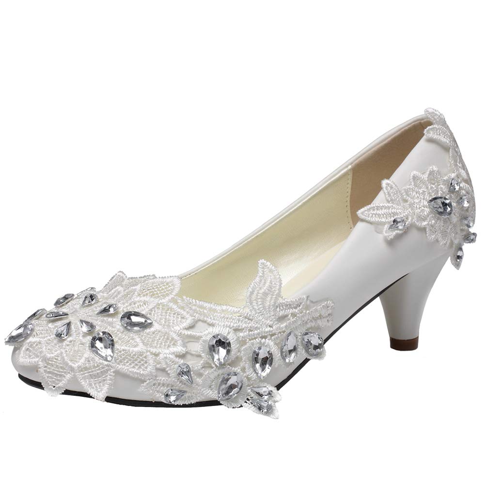 Getmorebeauty Women S Pearls Lace Weave Flower Kitten Heel Wedding