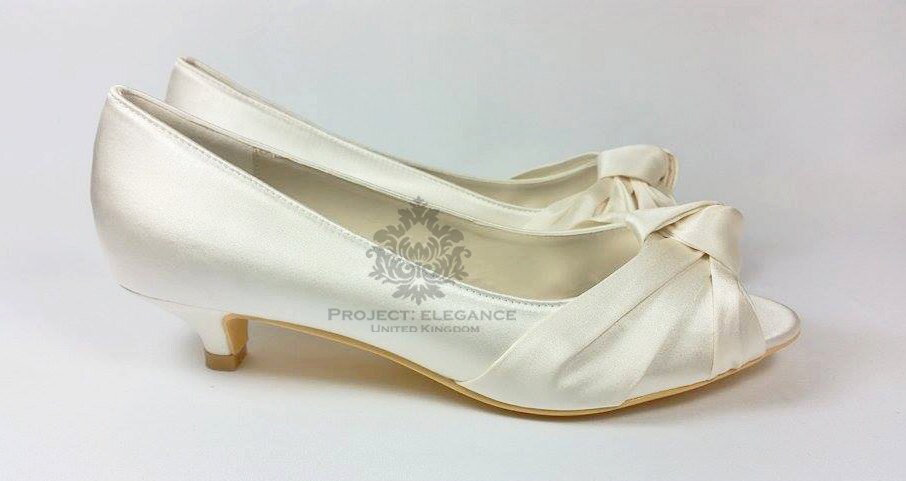 Ivory Satin Vintage Knot Peep Toe Low Heel 1 Inch Kitten Heel Etsy