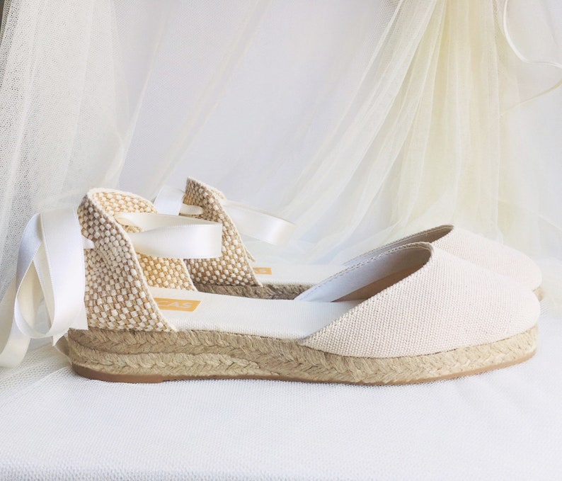 Ivory Low Heel Chloe Lace Up Espadrille Wedding Bridal Shoes Dance Shoes