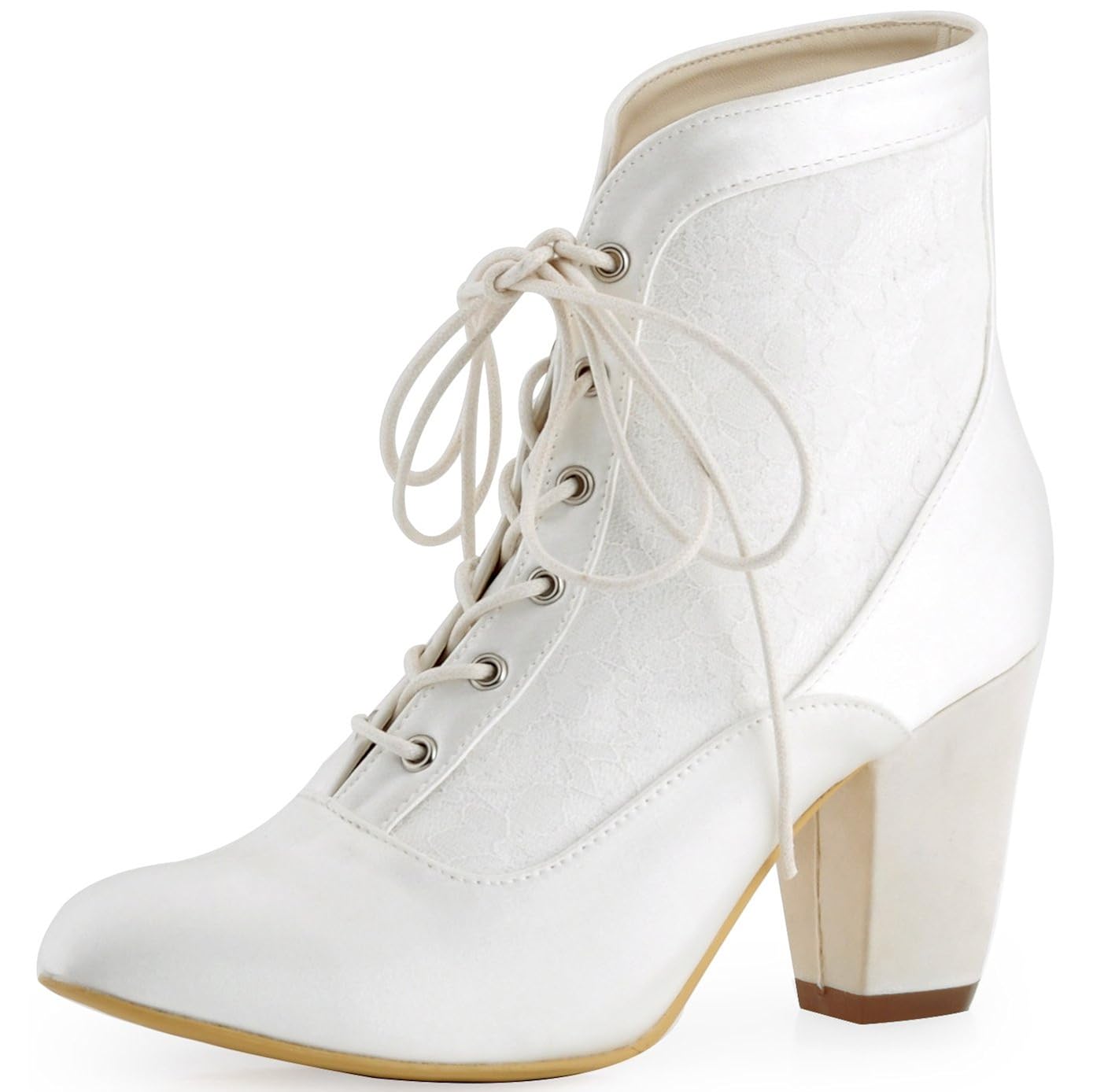 Elegantpark Women Wedding Shoes Mary Jane Heel Lace Up Bride Prom
