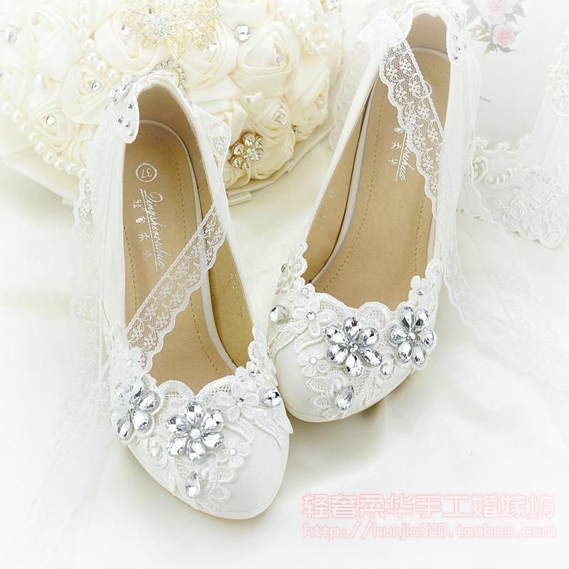 Last Pairs The Wedding Shoes With Satin Ribbons Lace Up Bridal