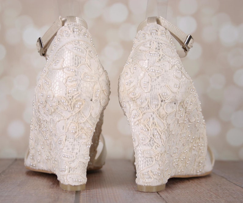 Wedding Shoes Ivory Wedding Shoes Lace Wedding Wedges Ivory Etsy