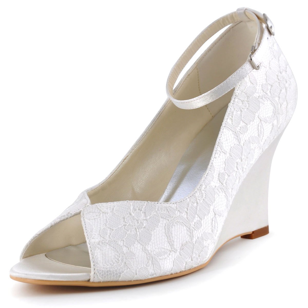 Elegantpark Women Lace Peep Toe Bridal Wedding Shoes Wedges High