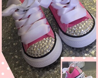 Personalised Infant White Converse Canvas Wedding Shoes Flower