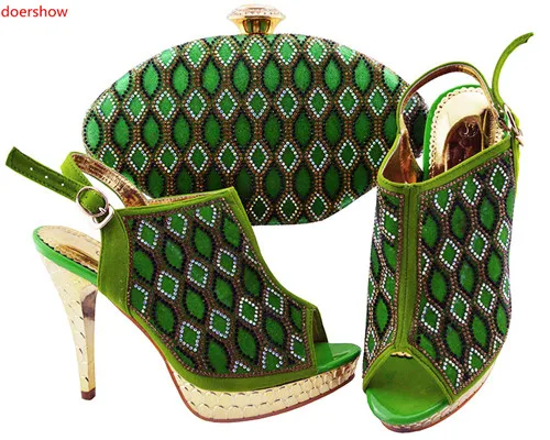 Doershow Women Shoes And Bag Set In Italy Lime Green Color Italian